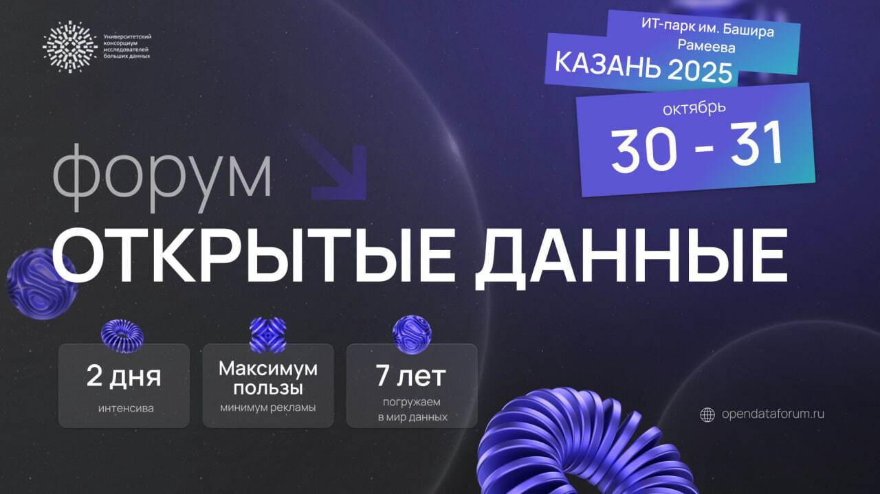 Форум «ОТКРЫТЫЕ ДАННЫЕ» (далее – Форум) впервые был проведен в 2019 году по инициативе Университетского консорциума исследователей больших данных. За прошедшее время Форум приобрел известность в профессиональном сообществе, пользуется заслуженной популярностью как среди университетских исследователей больших данных, так и среди представителей научных организаций и бизнеса. В 2025 году Форум пройдет уже в седьмой раз. За прошедшие годы Форум стал признанной всероссийской экспертной площадкой для обсуждения и продвижения решений в области работы с открытыми данными, реализации на их основе государственных, прикладных, исследовательских и образовательных проектов по широкому спектру социально значимых направлений.